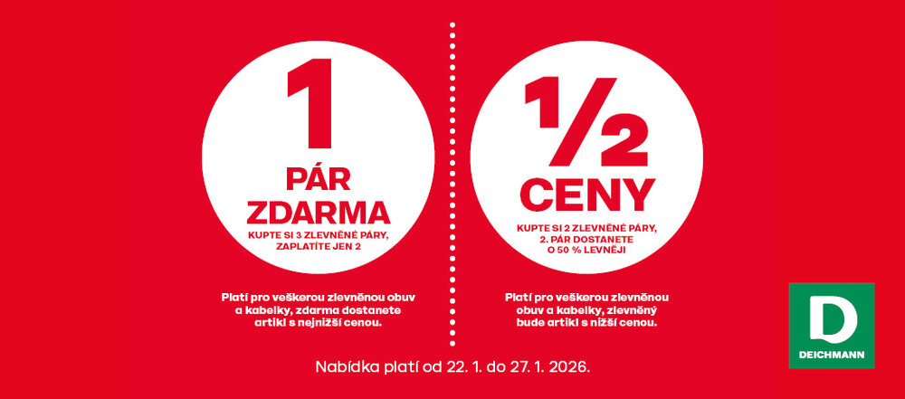 1 pár zdarma při koupi 3 zlevněných párů obuvi, 2. pár za 1/2 ceny při koupi 2 párů zlevněné obuvi