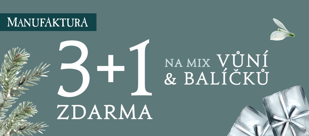 Využijte speciální akci 3 + 1 zdarma na vybrané dárkové balíčky a vůně.