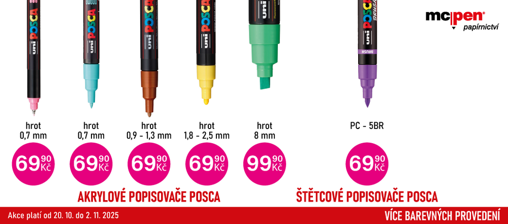 Pořiďte v naší prodejně akrylové a štětcové popisovače Posca za výhodnou cenu.