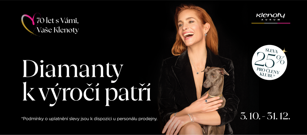 K příležitosti výročí naší značky jsme si pro členy Klenoty Klubu připravili slevu 25 % na diamanty.