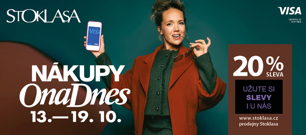 Využijte naši akci a s kupónem Ona Dnes získejte 20% slevu na nákup. Při platbě kartou VISA od nás navíc obdržíte dárek.