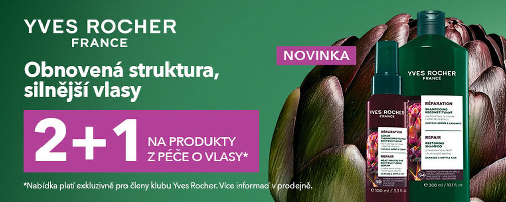 Přijďte do prodejny rostlinné kosmetiky Yves Rocher a objevte novou řadu produktů pro regeneraci vlasů. Členové věrnostního klubu Yves Rocher mohou navíc až do 5. 5. 2026 využít jedinečnou nabídku 2+1 zdarma na všechny produkty vlasové péče.