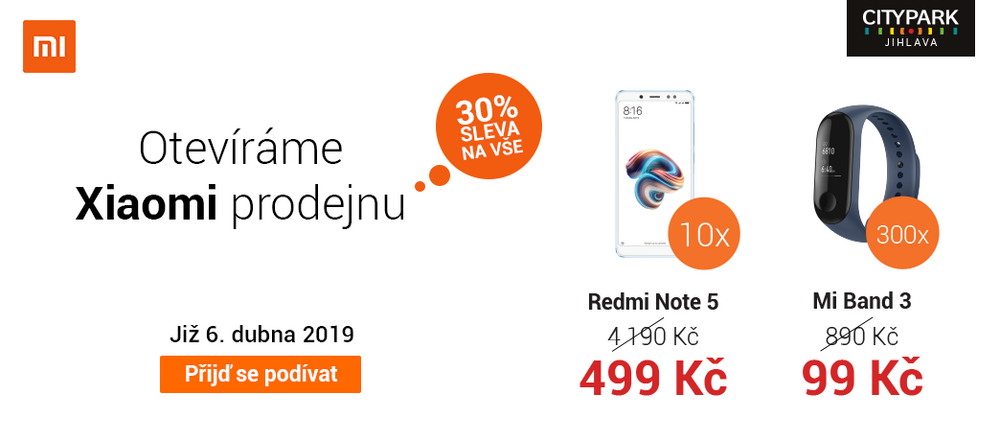 Přijďte i vy v sobotu 6. dubna do jihlavského Cityparku a vyberte si něco od Xiaomi za neuvěřitelné ceny.