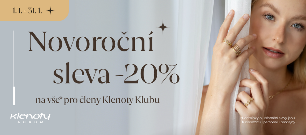 Přijďte s námi oslavit vstup do nového roku. Pro členy Klenoty Klubu jsme si připravili 20 % slevu na vše. Tato nabídka trvá od 1. do 31. ledna.