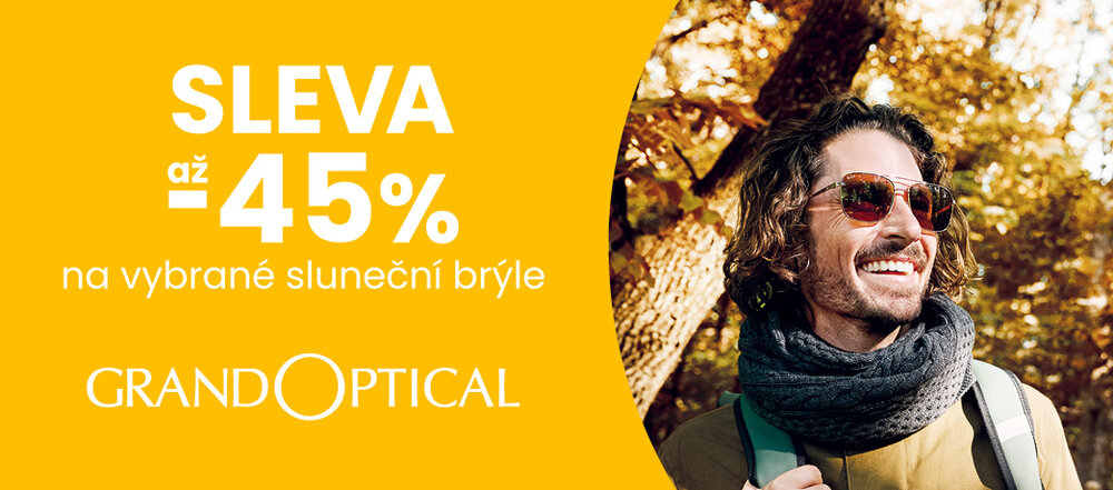 I na podzim ohrožuje náš zrak sluneční záření. Chraňte se slunečními brýlemi a dolaďte jimi Váš podzimní styl. Přijďte do prodejny GrandOptical a pořiďte si nové sluneční brýle se slevou až 45 %.