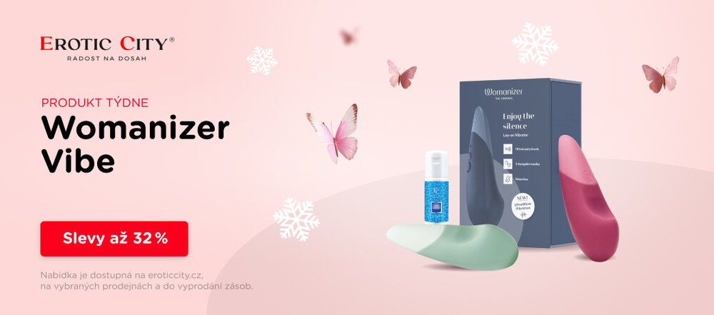Produkt týdne – Womanizer Vibe a Lubrikant Aqua Delay. Od 4. 12. do 10. 12. 2025 v prodejně Erotic City tyto oblíbené produkty za zvýhodněnou cenu. Womanizer Vibe přináší jedinečné potěšení a Lubrikant Aqua Delay zajistí dlouhotrvající komfort.