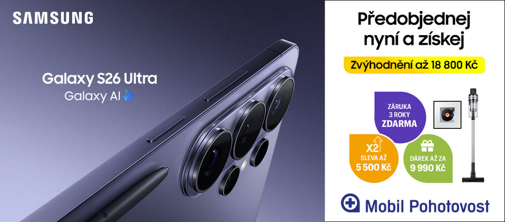 V Mobil Pohotovosti nyní předobjednáte řadu Samsung Galaxy S26 se zvýhodněním až 18 800 Kč a s 3 letou zárukou zdarma.