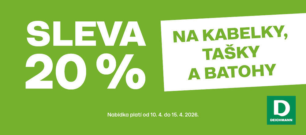 V prodejnách Deichmann probíhá speciální akce - sleva 20 % na všechny kabelky, tašky a batohy.