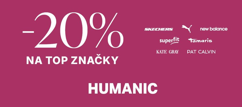 Právě teď v HUMANICu: sleva 20 % na top značky. Neváhejte a nakupte oblíbené modely za top ceny.