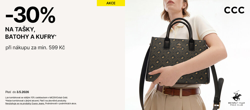 Akce platí i na zlevněné produkty do 3. 5. 2026 v prodejnách CCC, v aplikaci a na https://ccc.eu/cz/.
