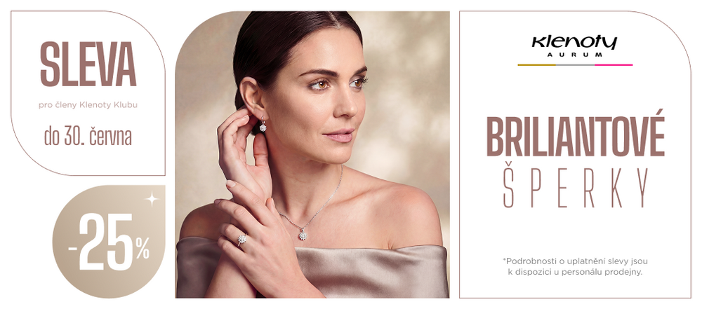 Až do 30. 6. mají členové Klenoty Klubu možnost zazářit se slevou 25 % na brilianty. Dopřejte si nadčasový třpyt, který podtrhne výjimečné okamžiky – nebo potěší jen tak.